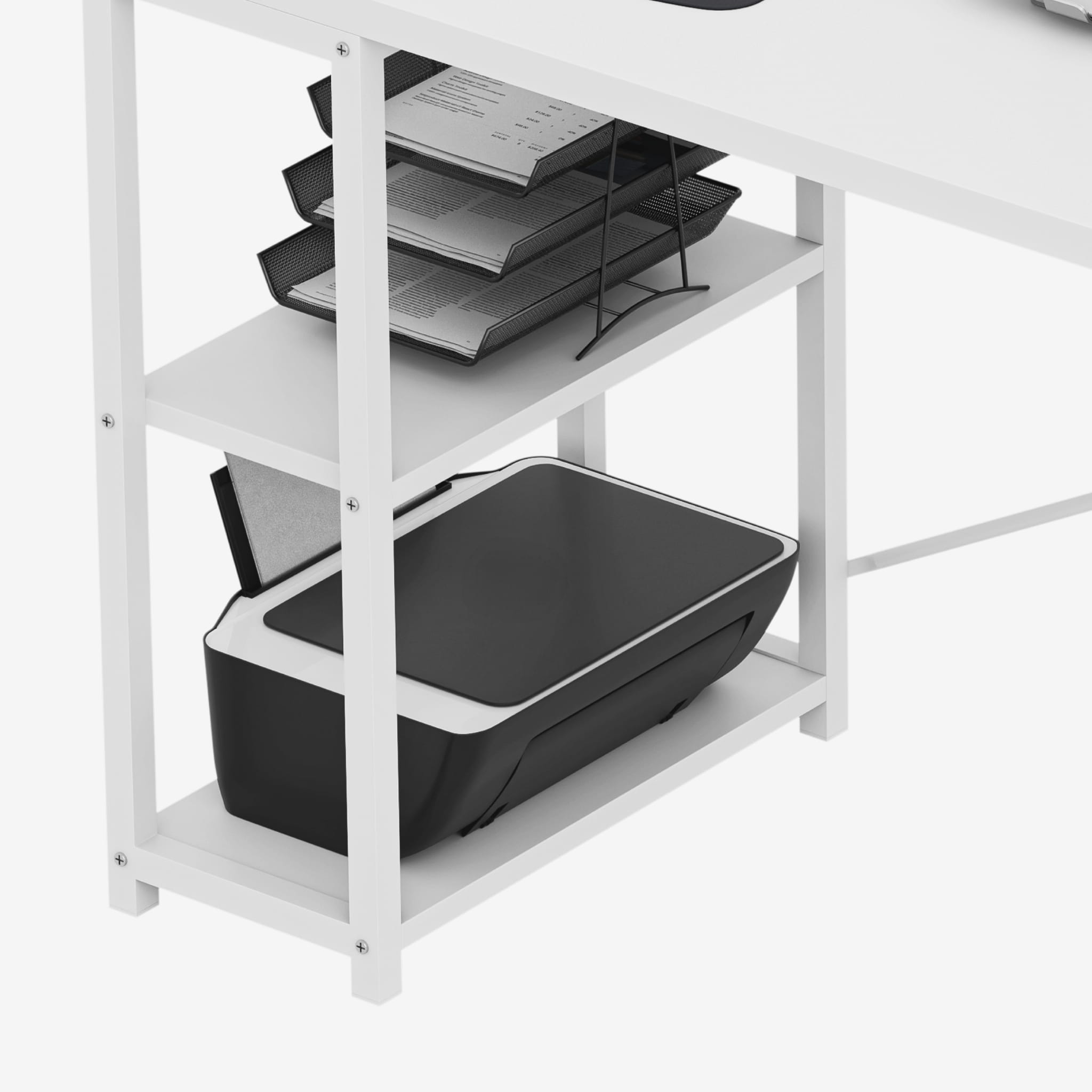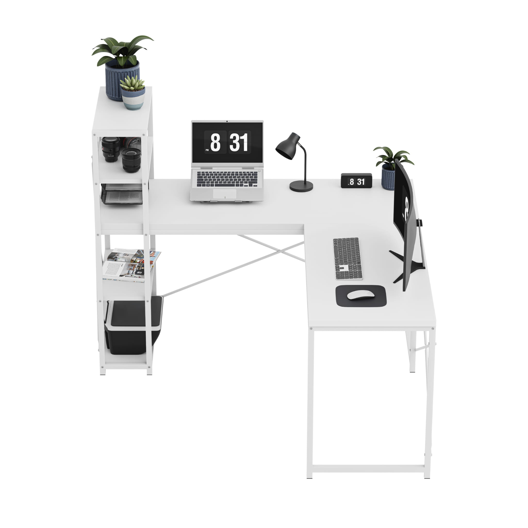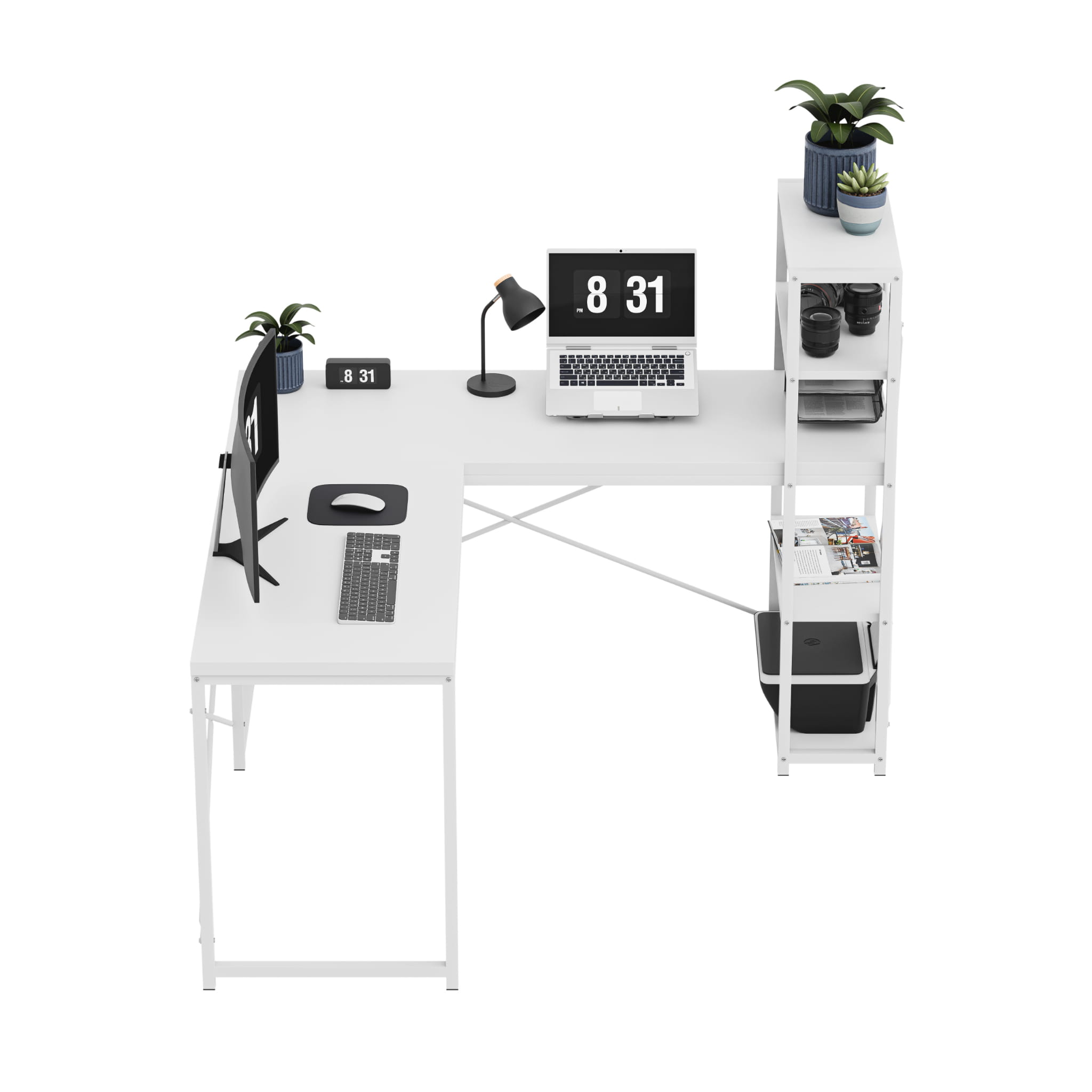 Birou de colț cu rafturi