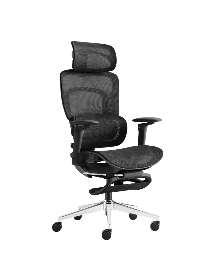 - Ergonomie premium – șezut reglabil, cotiere 6D, tetieră, suport pentru picioare și suport lombar