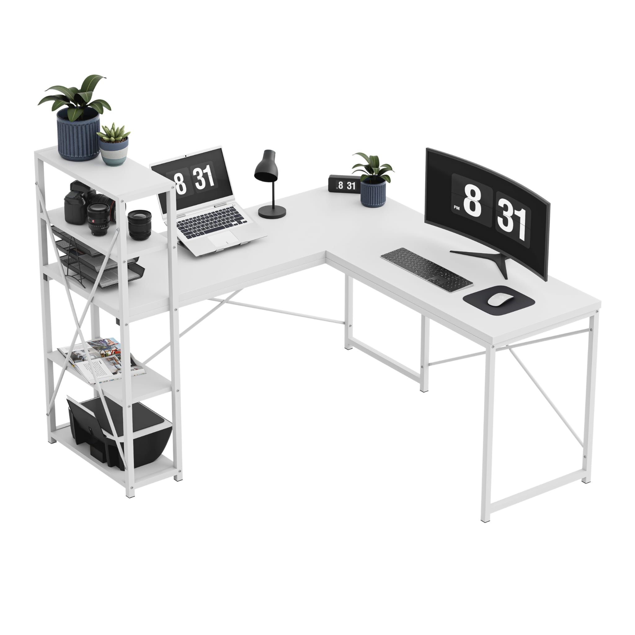 Birou de colț cu rafturi Mark Adler Leader 5.9 Alb 145 cm