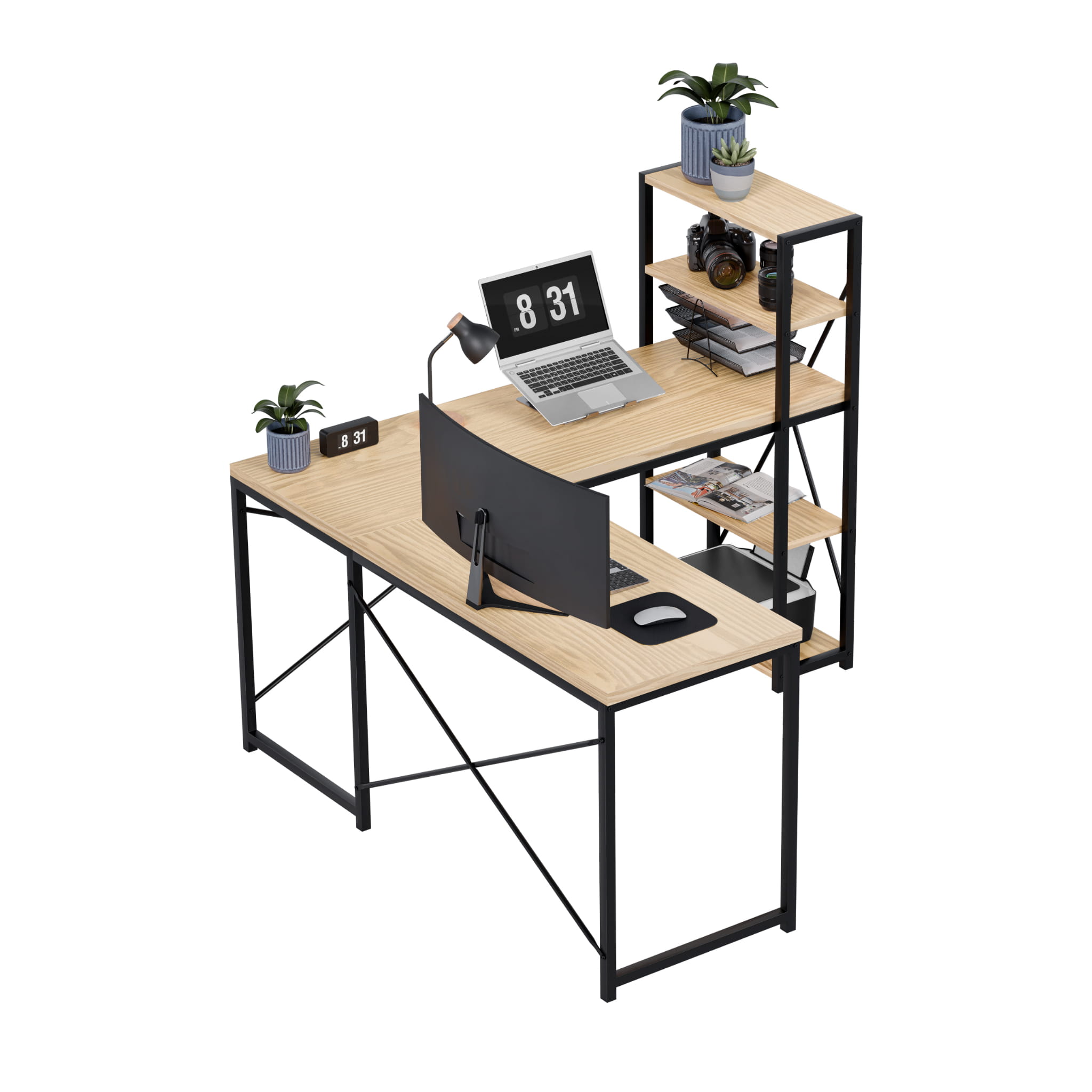 Birou de colț cu rafturi Mark Adler Leader 5.9 Craft 145 cm