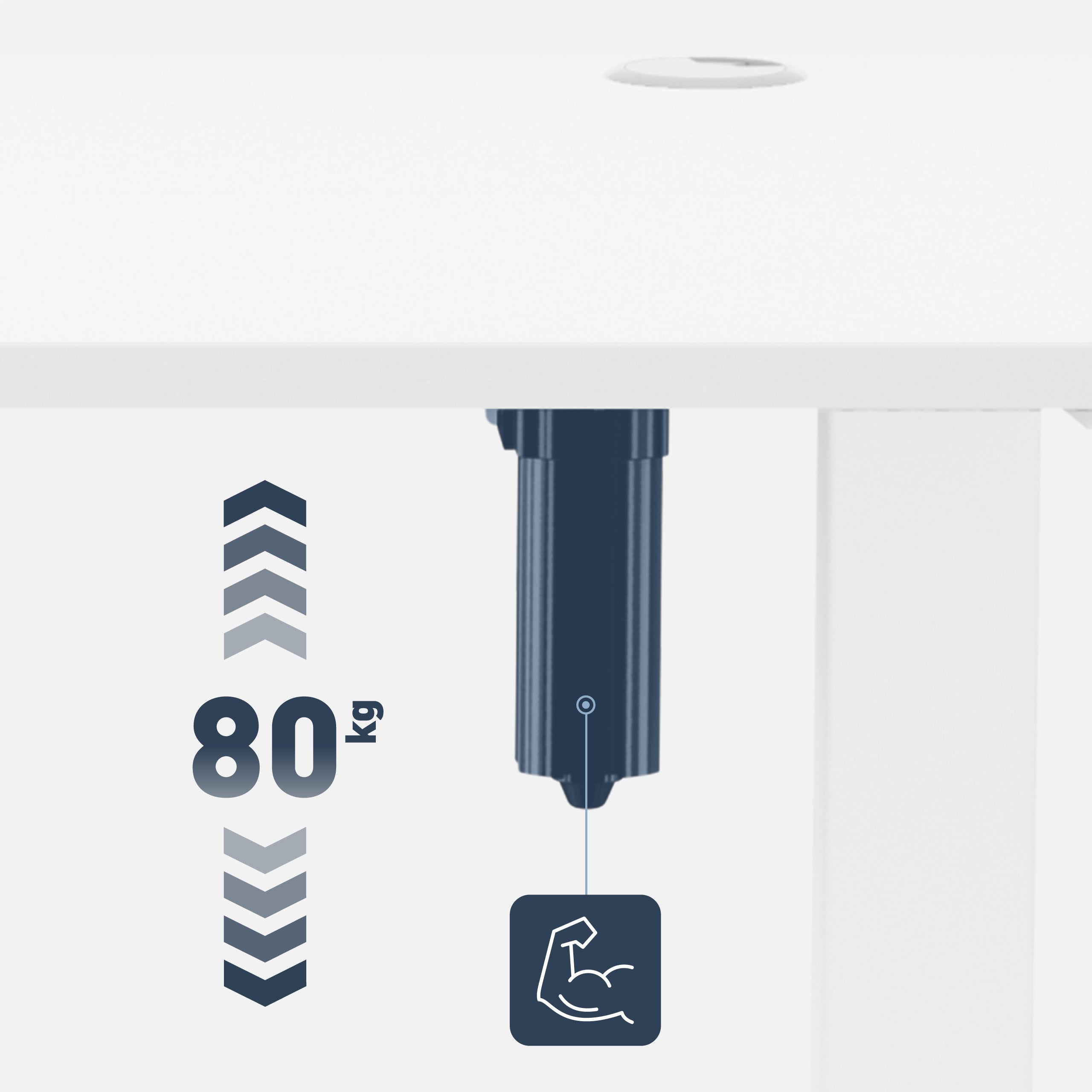 • Motorul ranforsat garantează o reglare lină a înălțimii mesei, chiar și cu sarcini maxime de birou (până la 80 kg).
