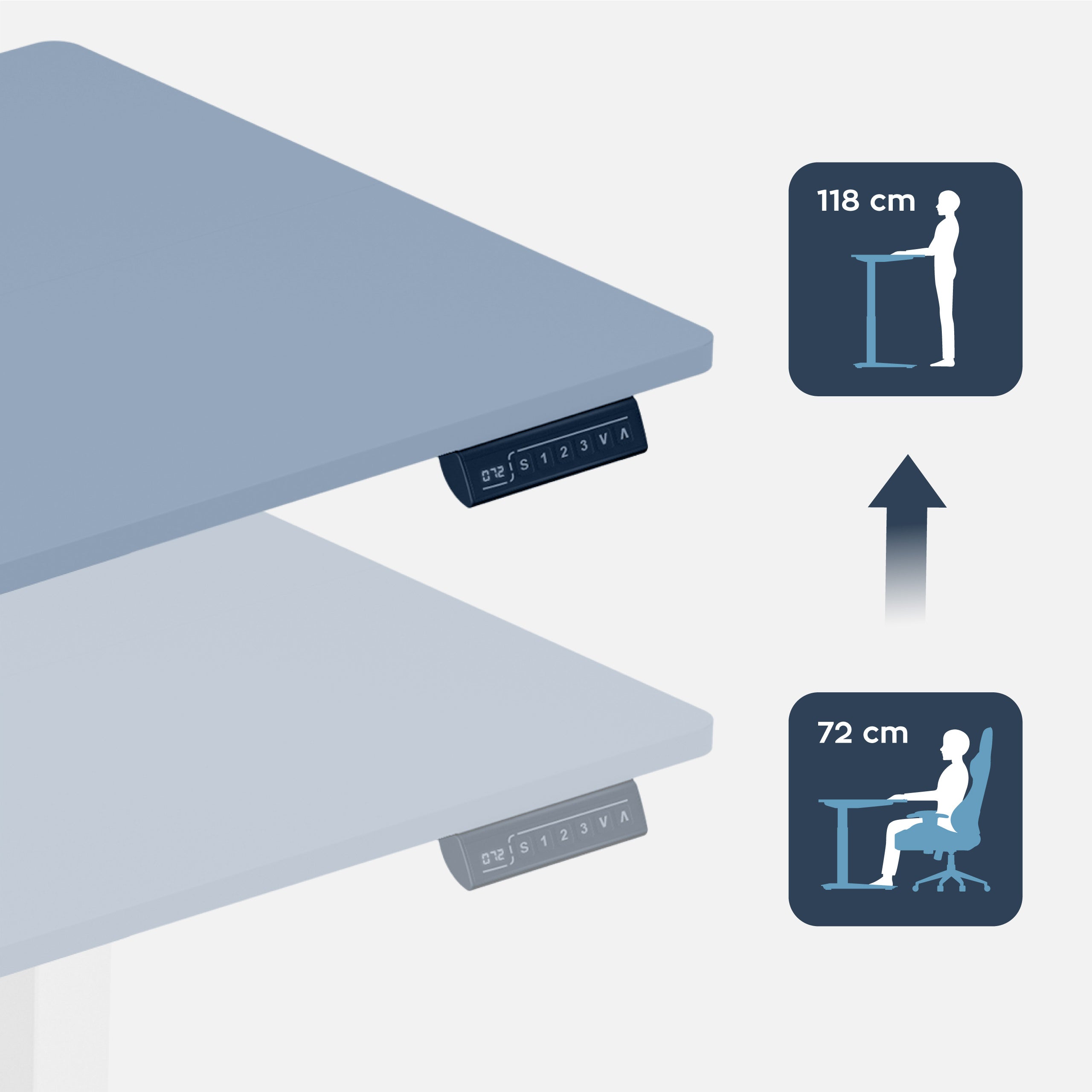 • Prin apăsarea a două butoane, puteți regla înălțimea blatului mesei exact în funcție de nevoile dvs. actuale.